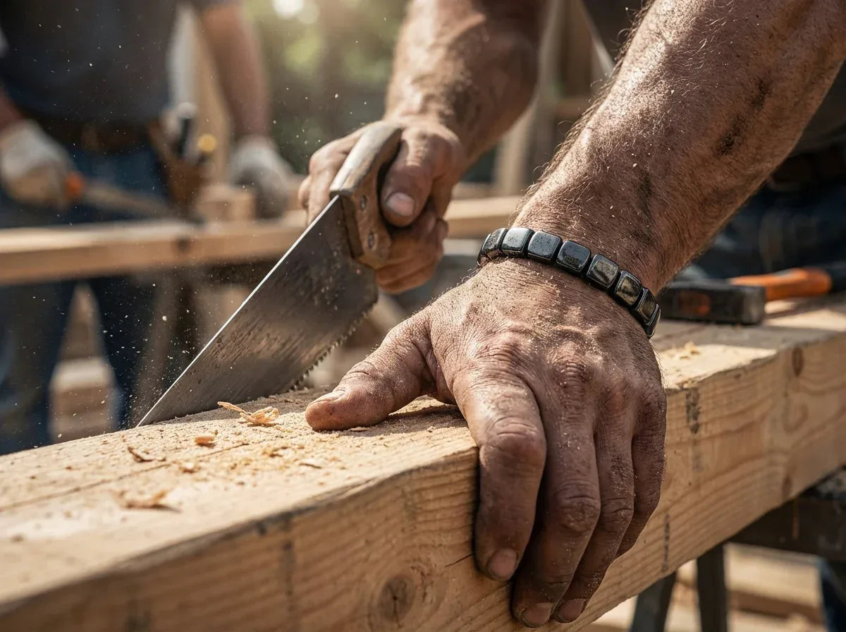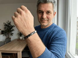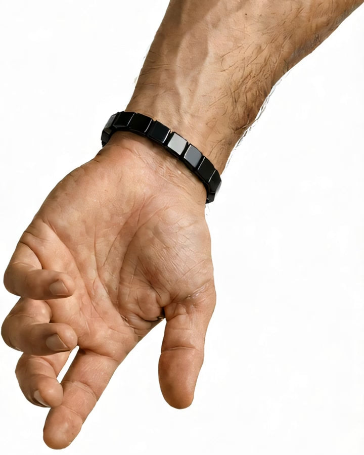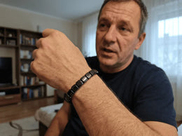 Magnetický náramok z prírodného hematitu, ktorý sprevádza mužov v každodennom živote a pomáha im cítiť sa pokojnejšie, stabilnejšie a získať späť trvalú energiu.